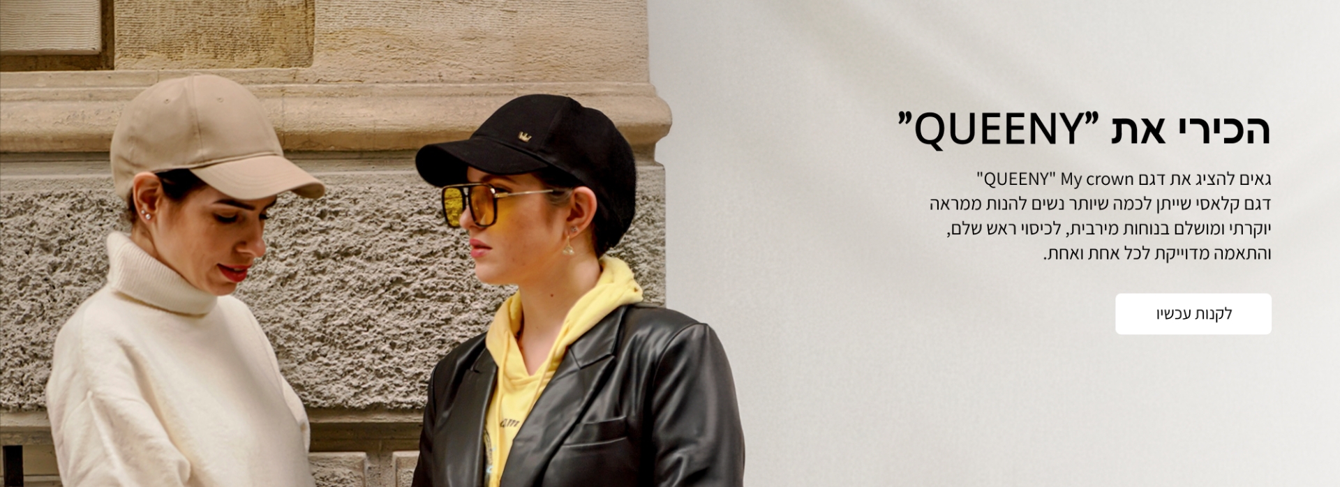 "דגם Queeny תוכנן בהשראת כובעי הבייסבול האייקוניים, עם גזרת פטנט מחמיאה ו-100% כותנה למקסימום נוחות."
